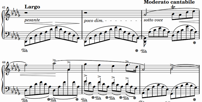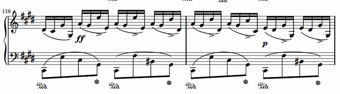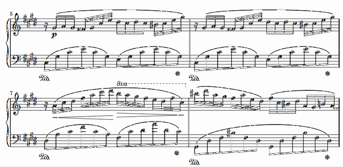 なお、下記の部分のAthilat編曲はちょっと問題。左手和音の位置と和声を完全に変えているため、聞いていても弾いても違和感ありまくりである。やはりここは原曲通りにすべきだろうし、私はそのように弾いている。