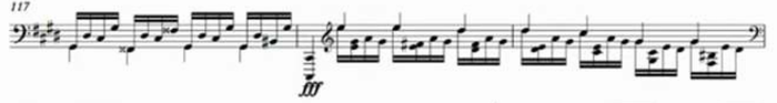 下記の部分のAthilatの編曲も見事だ。原曲の右手のパッセージの中に左手の低音を融合させていて、演奏効果も高い。