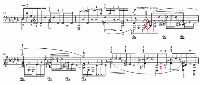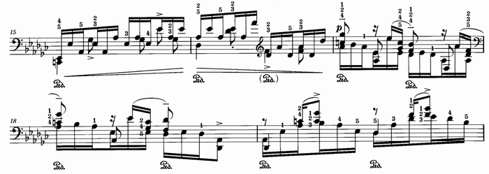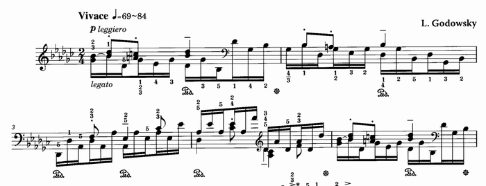 まず、冒頭部分。慣れてしまえば演奏は容易であり、かなり快適なテンポで弾けるはず。