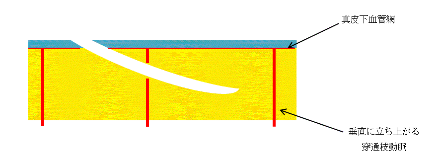 このような症例は多いと思うが,なぜきちんと縫合したのに皮弁が壊死するのだろうか。それは次のように考えるとわかる。