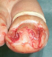 このような,高度の肉芽形成を伴う陥入爪の症例は多いが,私の経験では