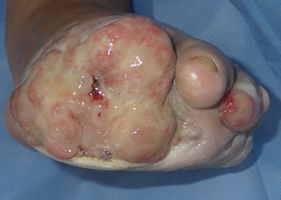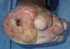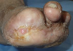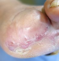 7月10日に足背に小さな膿瘍形成を認め,切開排膿し,止血を兼ねてアルギン酸塩被覆材を創内に挿入。