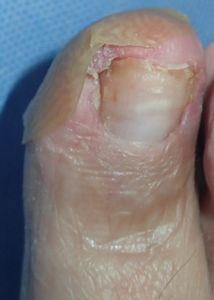 終了後,痛みが全くなくなり,普通に歩けるようになった。爪が伸びるまでテーピングを続けるように指導。