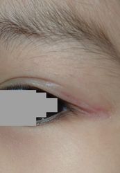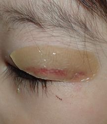 重瞼線に平行な傷は縫合しなくてもきれいに治ります。