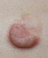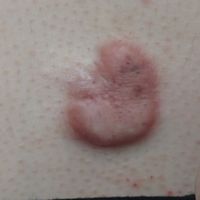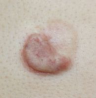 下顎部のケロイドで受診した際,同時に前胸部ケロイドにもケナコルト局注を開始。