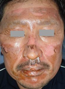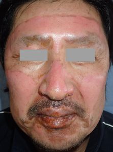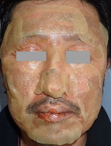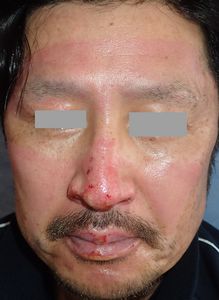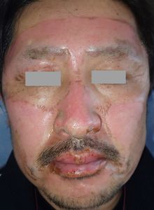 2016年2月23日未明,作業中に工具を使っていて燃料に引火し,顔面熱傷受傷。〇〇大学附属病院救急室を受診。同日,同院形成外科を受診し,アズノール軟膏とゲンタシン軟膏が処方された。