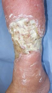 平成25年,左下腿に傷ができ,様子を見ていたが治らなかったため,〇〇大学付属病院皮膚科を受診。ゲーベンクリーム®が処方されたが,その直後から痛みがひどくなり,歩行困難になった。静脈瘤について同病院血管外科が紹介されたが,「傷があるので静脈瘤の治療は不可能」と説明された。