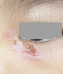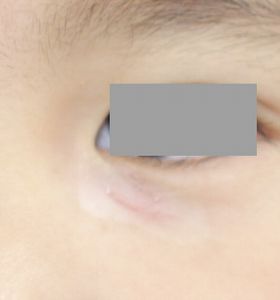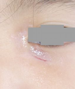 2017年4月16日,講演で遊んでいて転倒し,左目の下に木の枝がぶつかって傷ができた。〇〇病院救急室を受診し,軟膏が処方された。翌日,同院形成外科を受診し軟膏が処方され,1週間後に再受診するように説明された。ママ友が練馬光が丘病院受診をアドバイス。
