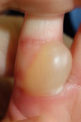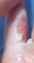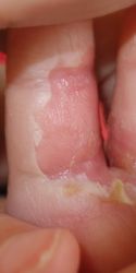 1歳7ヶ月男。 2017年4月16日,炊飯器の蒸気で左手にヤケド。父親の同僚が当科受診を薦めてくれた。 4月17日,当科受診。水疱膜を除去してミトン型にしたプラスモイストで治療。