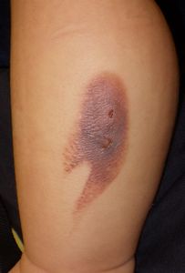2018年7月1日朝,母親が使い終わって床の上に置いてあったアイロンのダイアルを自分で回してスイッチが入り,左下腿外側に熱傷受傷。〇〇皮膚科を受診し,リンデロンVG軟膏が処方された。帰宅後,母親が「ヤケド 痕が残らない」と検索。