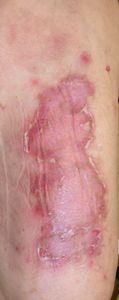 7月20日,当院を受診。水疱膜を除去し,ズイコウパッドで被覆。