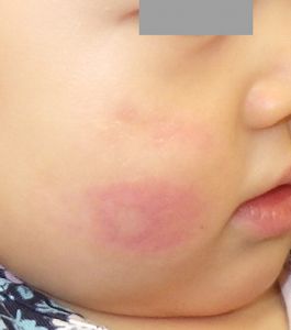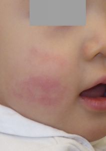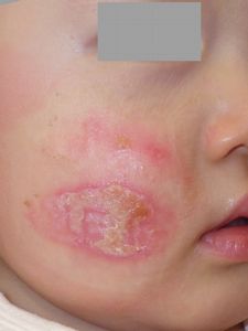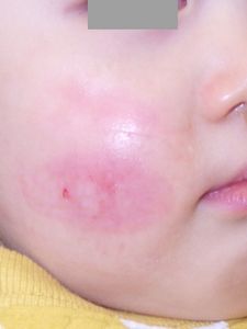 2018年11月29日,洗面台の棚においてあったヘアアイロンのコードを掴んで落とし,顔面熱傷。〇〇皮膚科を受診し,アズノール軟膏が処方された。12月4日に再受診したが,深いヤケドで痕が残り手術が必要になると説明され,ゲーベンクリーム®が処方された。