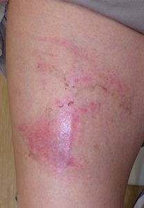 2020年2月7日朝,入居中の老人ホームでウォーターサーバーの熱湯で右大腿熱傷。〇〇皮膚科を受診し,アズノール軟膏が処方されたが,痕が残ると説明されたため,スマホでネットで検索。