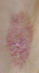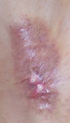 2020年4月17日,銀座の〇〇形成外科クリニックで右腋臭症手術(剪除法)。24日に抜糸してもう受診しなくていいが,1週間ガーゼを絆創膏で圧迫し,シャワー・入浴は禁止と説明された。その時点で皮膚が白くなっていてネットで調べると壊死していることがわかり,同院に連絡したが受診しなくても治ると説明するだけだった。ネットで病院を検索。