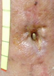 6月30日(59日後) 浸出液はほとんど出なくなり,ナイロン糸も1本しか入らなくなった。 |
