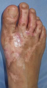 7月18日,調理中にヤカンの熱湯を誤って右足にかけた。直ちに当院ER受診し,