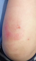 1歳2ヶ月男。 2016年10月30日,自宅でウォーターサーバーを押して熱湯が出てきて右前腕にヤケドし,当院ERを受診。ストッパーがついている機種だが押したら熱湯が出たようだ。 翌日,当科を受診。ハイドロコロイド被覆材で治療。