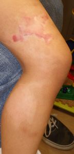 両親がネットで熱傷治療について検索し,11月6日,当院を受診。ズイコウパッドで治療。