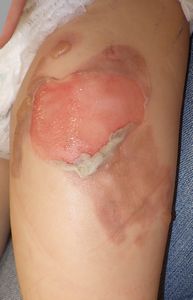 2020年7月14日,味噌汁椀を倒して腹部と左下肢に熱傷。〇〇大学△△病院救急室を受診しアズノール軟膏とトレックスガーゼで治療。以後は近くの病院に行くよう説明を受けたため,ネット検索。