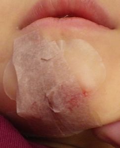 2021年11月29日、公園で遊んでいて転倒して下顎裂傷。同じ公園にいたママ友が当院受診をアドバイス。