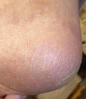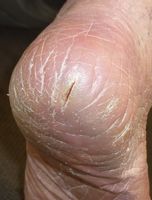 81歳M 以前から踵のひび割れが痛い、とのことで2025年2月12日、当院受診。ハイドロコロイド包帯 アドバンスで痛みは消失。