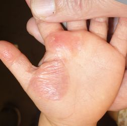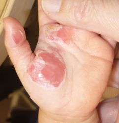 2025年2月15日、渋谷の飲食店のストーブに触り両手をヤケド。〇〇ひふ科を受信し、ステロイド軟膏が処方された。翌日、△△皮膚科を受診したが同じ治療でいいと説明された。母親は帰宅後にネット検索。