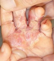 2024年12月9日、当院を受診。左手掌~中指・環指掌側の深い熱傷だった。ミトン型にしたプラスモイストで患部被覆。1ヶ月で上皮化したが、その後、指の瘢痕拘縮を生じたため、神奈川県内の病院に紹介。