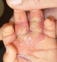 2週間前、加湿器の蒸気で左手にヤケド。〇〇形成外科医院を受診、アズノール軟膏とガーゼで治療。受診のたびに医師は「よくなっている」と説明しているが、日ごとに悪化しているように見えるため、不安になりネット検索。