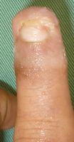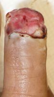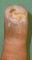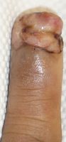 2024年12月18日、作業中に左示指を鉄骨に挟まれた。〇〇病院整形外科で縫合。12月26日に抜糸したが、処置が激痛のため、同行していた事業主が帰宅後にネット検索。