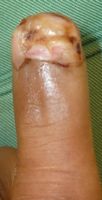 12月27日、当院受診。プラスモイストで患部被覆し、痛みはなくなった。2ヶ月後、爪甲も復活した。