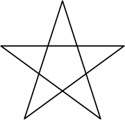 あるいは☆の形もそうだ。一筆書きではこのように書くが,さまざまな辺の比のなかに,幾つもの黄金比が見いだせるのだ。ピタゴラスがこの図形をグループの象徴としたのも,これが無限の黄金比で構成されているからだったという。